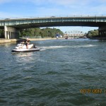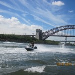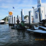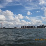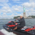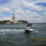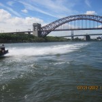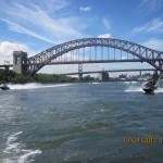 The ocean was beautiful with 4-6 foot rollers. It was an awesome ride under the Verrazano Bridge and into New York Harbor, where we stopped for pictures of the Statue of Liberty and Manhattan before gassing up (14 gallons) and meeting 3 people, Sid, Carin and Steve, whom would ride back with us to their dock in Glen Cove. The ride up the East River to Hells Gate was choppy, but I don’t think anybody minded as the excitement of the city overshadowed the chop.