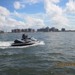 Saturday July 23. Forecast was looking good for our trip around LI. We met at Frank and Dicks in Babylon and were off by 7:30. We had 9 skis – Barry, Jason, Geoff, Yamadude Joe, Sarah, Nizam, George, Howie and Will. Unfortunately one guy had an engine light come on before we left so he stayed back – better than taking a chance on a long trip.