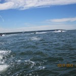 Back into the Sound the chop had subsided some so the ride was real nice to Plum Gut, but coming around the corner to Orient Point the wind was still blowing and the chop was back. At Orient by the Sea, although our tongues were hanging out for food we really needed to get to Shinnecock Canal for gas before all the stations closed at 6pm or we wouldn’t get home on the fuel we had, so we were off again.
