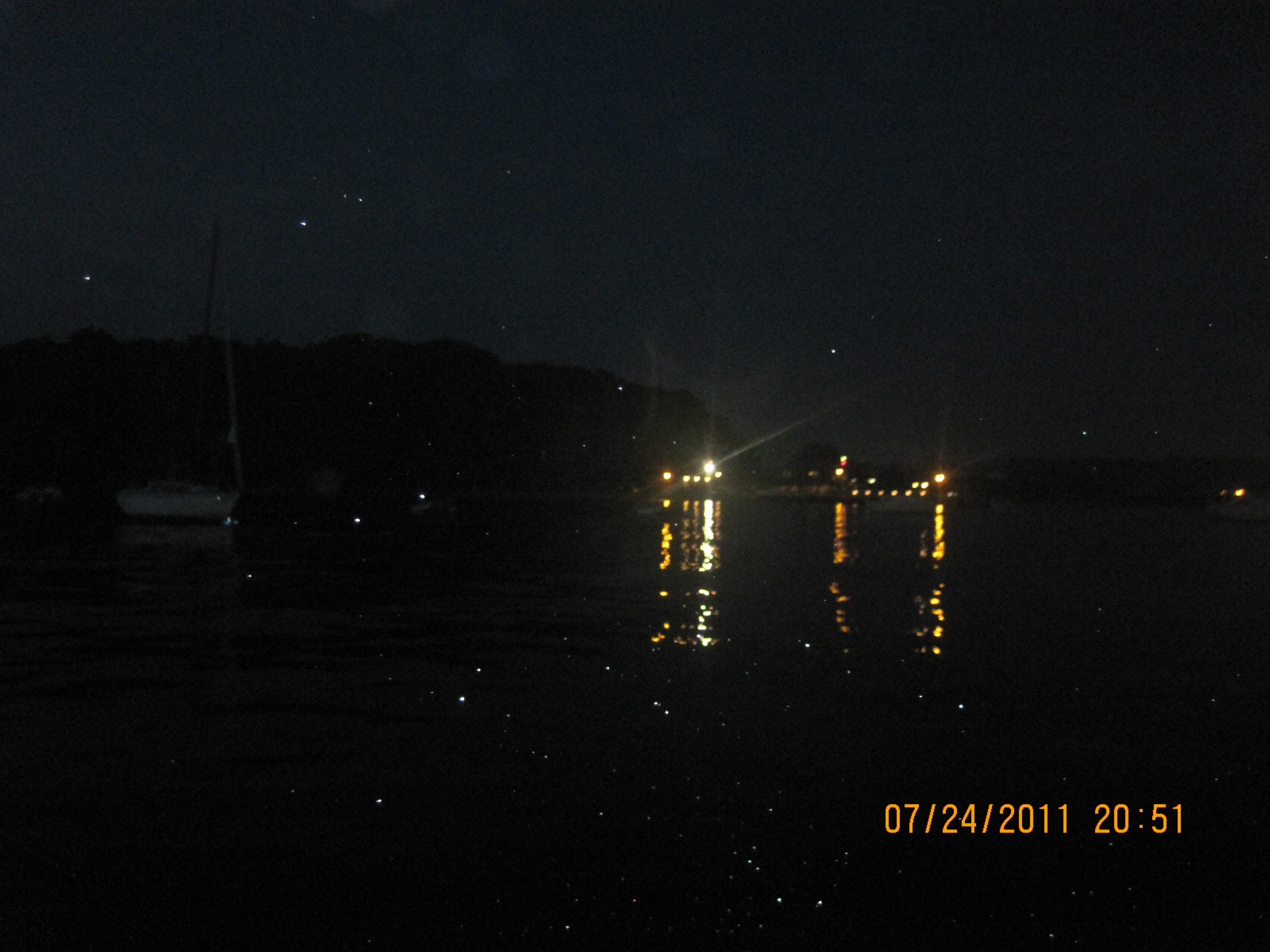 The water was flat so we cruised easily south along the eastern shore at a good pace. With a quick stop for a swim we stayed along the east shore with a refuel stop at Tarrytown Marina planned. Keeping along the shore you pass through Peekskill Bay, Croton-on-Hudson in Haverstraw Bay, and Sing-Sing Prision in Croton Bay. The sun was getting low but rather than just stop for fuel at Tarrytown Marina we decided to eat dinner as well. They have a restaurant and an outside clam bar at the marina. We chose the clam bar due to time constraints but I’m told the restaurant is very good. We had a lot of laughs again as I was pleased to see how easily everybody was getting along. Nice place.