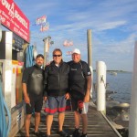 The ride to the lighthouse entrance to Greenport was rough but once inside and protected by Shelter Island and Greenport the ride was a lot nicer. This is always a nice ride with lots of views. Day trips out this way are awesome, but, unfortunately we were looking to make time and complete our trek in one day, so it was a steady run through Little Peconic and Peconic Bays to Shinnecock Canal. We made it for gas (12 gallons) before 6pm and then went to Tiderunners Restaurant on the canal for food – finally! It would’ve been nice to lounge longer but again we needed to make time again so ate quickly and we headed through Shinnecock Bay and Tiana Bay to the Quogue Canal – which is a 35-40 minute 5mph run, but a really a nice ride. Heading out of the Canal at Westhampton Beach and into Moriches Bay the sun was getting low really fast, but the water was flat and beautiful. We were figuring that the Great South Bay would be the same but no such luck for the end of the trip! It was pretty rough and we ran out of daylight in the end; but what an adventure. It was an awesome trip and a good time was had by all. Great day on the water. 7:30am – 9:00pm and 254 miles…next trip is up the Hudson on August 11 – 12, but we will make it an overnighter…any takers?
