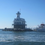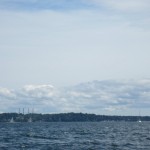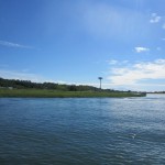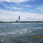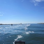 Back into the Sound the chop had subsided some so the ride was real nice to Plum Gut, but coming around the corner to Orient Point the wind was still blowing and the chop was back. At Orient by the Sea, although our tongues were hanging out for food we really needed to get to Shinnecock Canal for gas before all the stations closed at 6pm or we wouldn’t get home on the fuel we had, so we were off again.