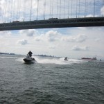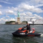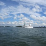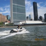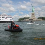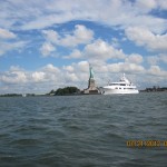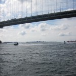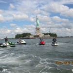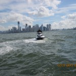 The ocean was beautiful with 4-6 foot rollers. It was an awesome ride under the Verrazano Bridge and into New York Harbor, where we stopped for pictures of the Statue of Liberty and Manhattan before gassing up (14 gallons) and meeting 3 people, Sid, Carin and Steve, whom would ride back with us to their dock in Glen Cove. The ride up the East River to Hells Gate was choppy, but I don’t think anybody minded as the excitement of the city overshadowed the chop.