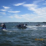 Saturday July 23. Forecast was looking good for our trip around LI. We met at Frank and Dicks in Babylon and were off by 7:30. We had 9 skis – Barry, Jason, Geoff, Yamadude Joe, Sarah, Nizam, George, Howie and Will. Unfortunately one guy had an engine light come on before we left so he stayed back – better than taking a chance on a long trip.